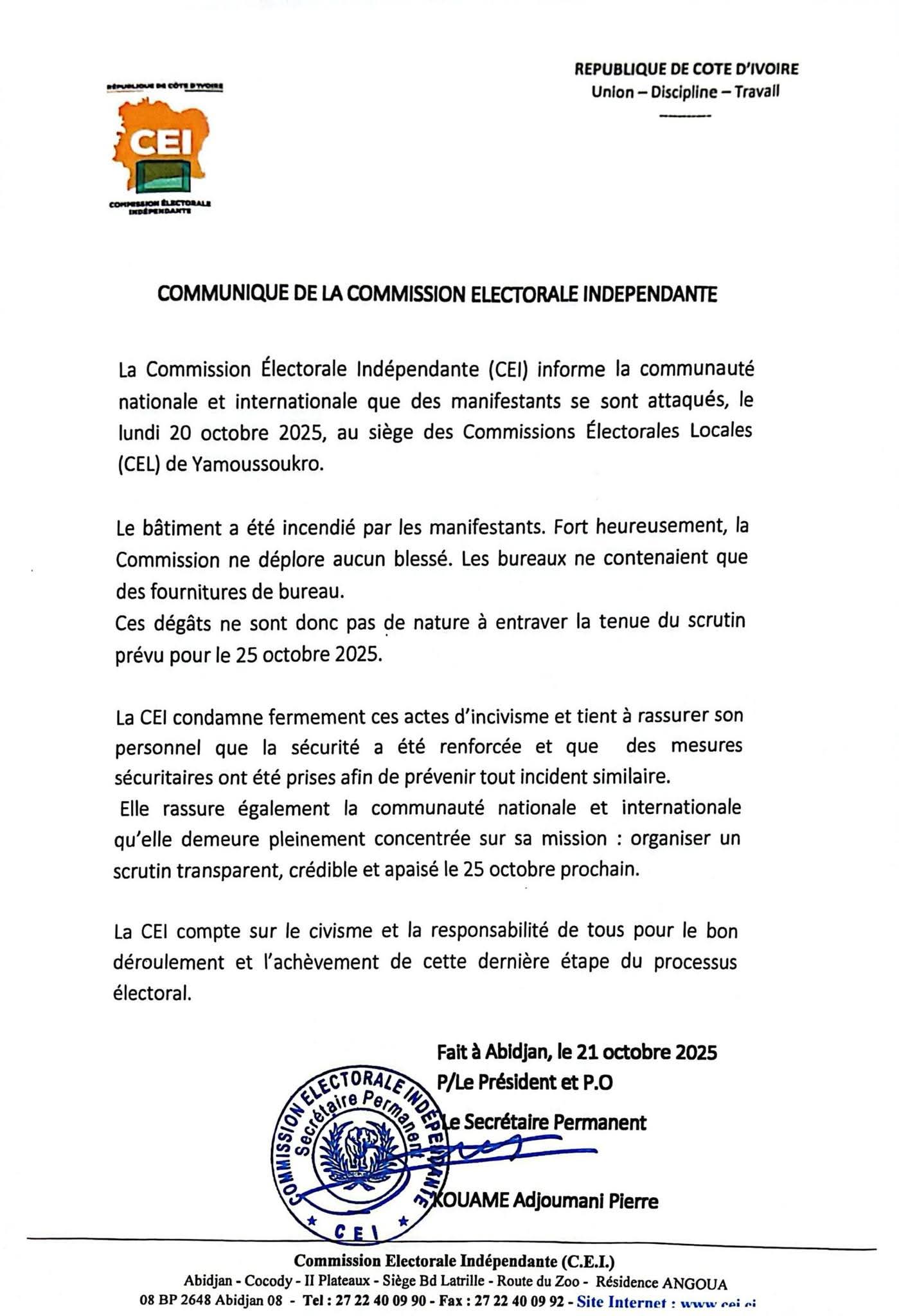 La Commission Électorale Indépendante (CEI) a annoncé les résultats définitifs des législatives du 27 décembre 2025, à l’exception des circonscriptions de Toumodi, Dualla et Massala,