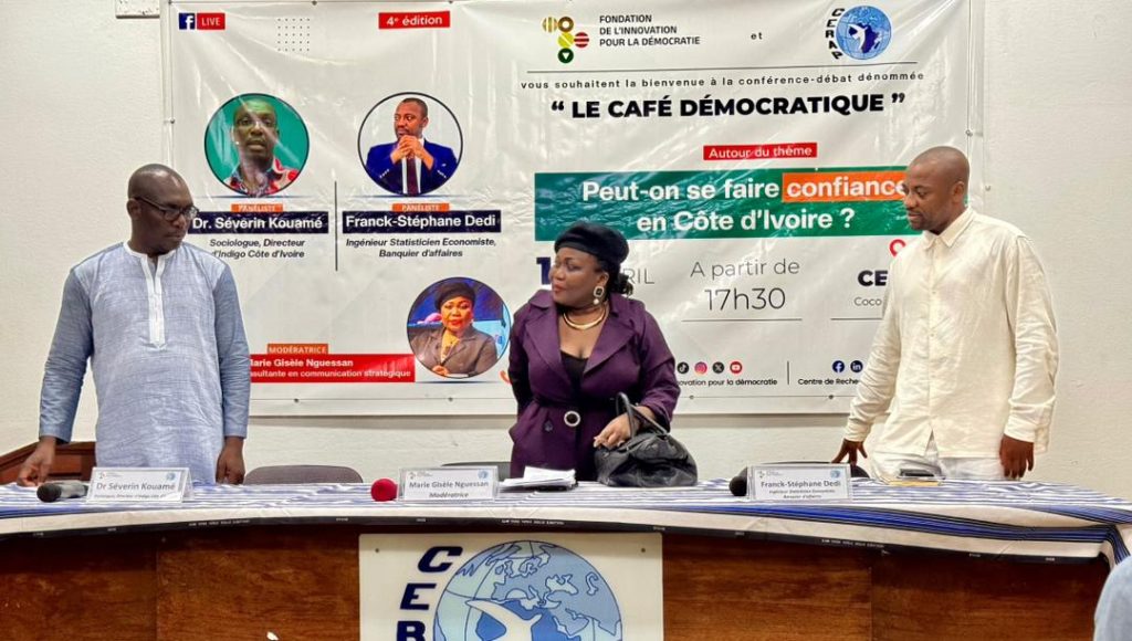 Le premier « Café démocratique » de l’année 2026 s’est tenu le vendredi 10 avril à 17h30 au CERAP autour du thème : « Peut-on se faire confiance en Côte d’Ivoire ? ». Organisée par la Fondation de l’innovation pour la démocratie, en collaboration avec le Centre de Recherche et d’Action pour la Paix (CERAP), cette rencontre a réuni citoyens, universitaires et acteurs publics dans un cadre d’échanges ouverts.