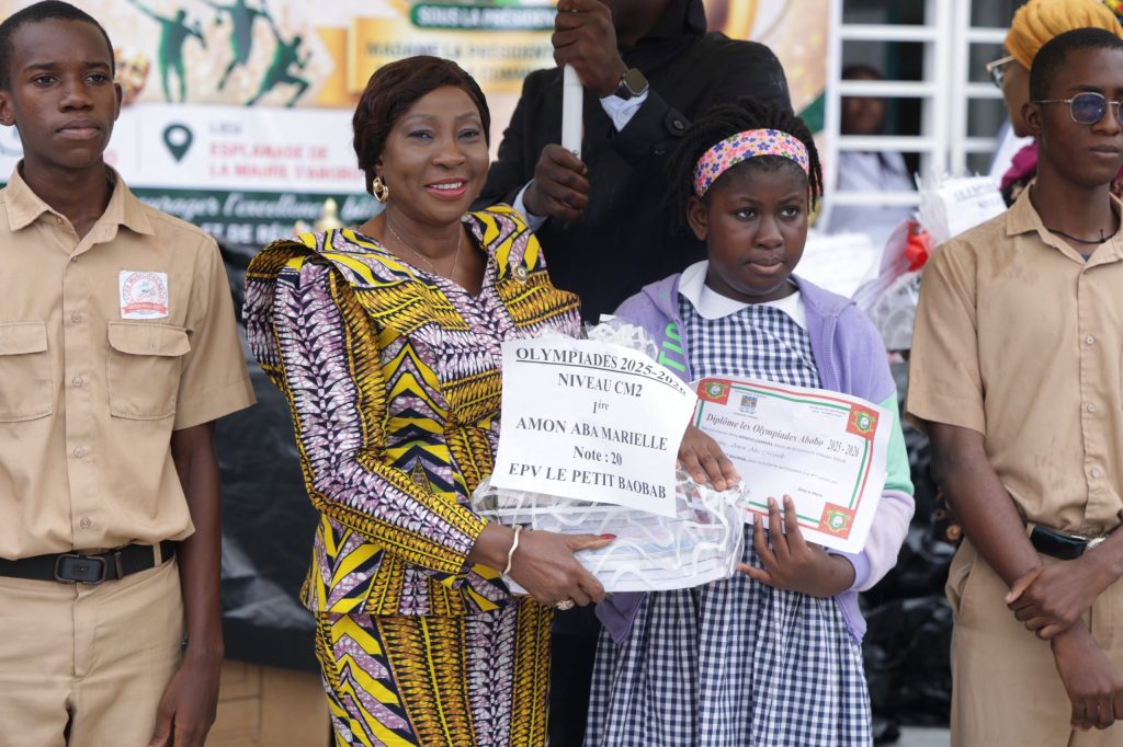 La commune d’Abobo a vibré, le mercredi 29 avril 2026, au rythme de l’excellence et de la créativité à l’occasion d’une double cérémonie de récompenses des lauréats du Festival scolaire des arts et de la culture d’Abobo (FESAC-A) et des Olympiades de français et de mathématiques. Présidée par la maire, Kandia Camara, cette initiative vise à promouvoir les talents et encourager la performance scolaire et artistique chez les jeunes.