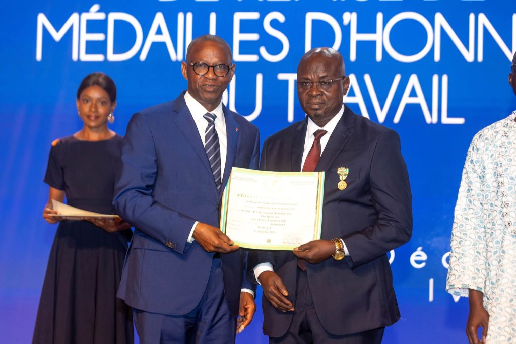 Africa Global Logistics (AGL) Côte d’Ivoire a distingué 442 de ses collaborateurs lors d’une cérémonie officielle de décoration. La cérémonie s’est tenue le vendredi 12 décembre 2025 au Sofitel Hôtel Ivoire d’Abidjan. Les récipiendaires ont reçu la médaille d’honneur du travail, en présence d’Adama Kamara, ministre de l’Emploi et de la Protection sociale.
