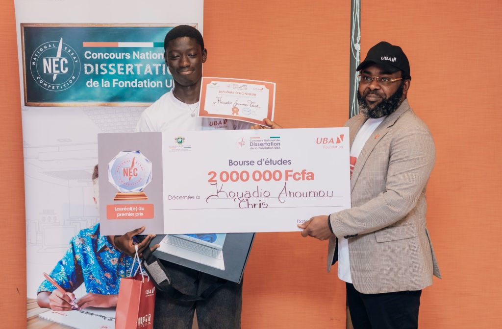 Anoumou Chris Kouadio, élève au Lycée moderne de Bongouanou, a remporté le samedi 21 février 2026 à Abidjan la troisième édition du Concours national de dissertation organisé par la Fondation UBA. Avec une moyenne de 16/20, il décroche une bourse d’études post-baccalauréat de deux millions FCFA, un trophée et divers gadgets.