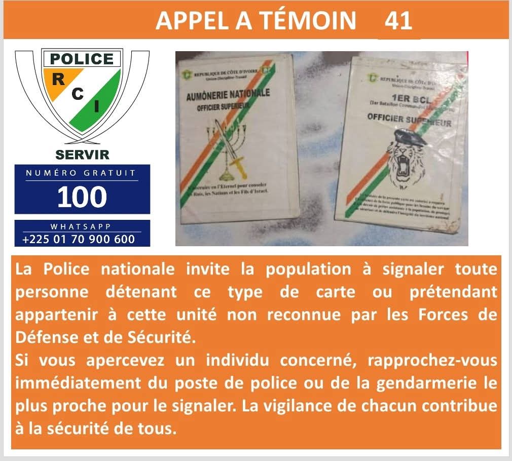 La Direction générale de la Police nationale (DGPN) a lancé, le mercredi 12 novembre 2025, un appel à témoin invitant la population à signaler toute personne détenant ou présentant une carte appartenant à une unité non reconnue par les Forces de défense et de sécurité (FDS).