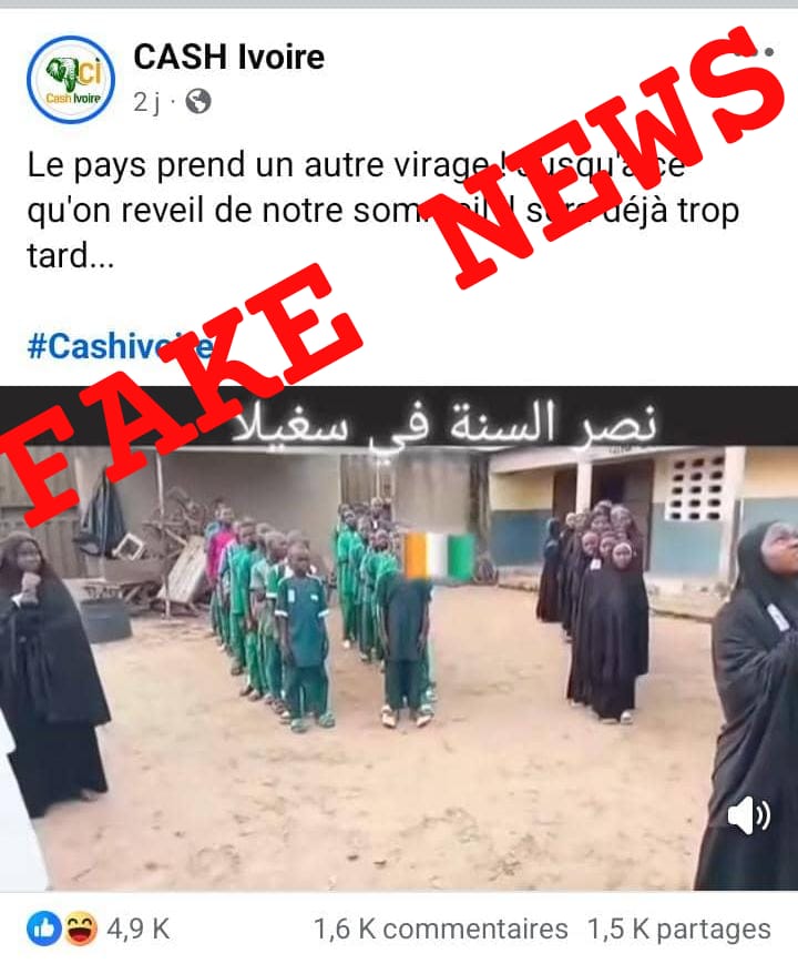 Une vidéo devenue virale sur les réseaux sociaux depuis le 30 octobre 2025 montre des élèves d’une école confessionnelle de Séguéla chantant en arabe autour du drapeau national. Accompagnée d’un message alarmiste, elle a suscité de vives réactions. Après vérification, il s’agit d’un montage sonore et d’une manipulation.