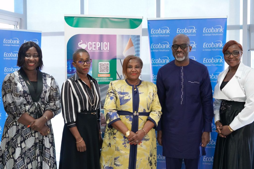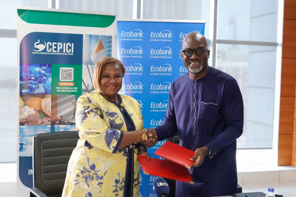 Solange Amichia, directrice du Centre de promotion des investissements en Côte d’Ivoire (CEPICI) et Paul-Harry Aithnard, directeur général d’Ecobank Côte d’Ivoire ont paraphé un accord cadre. Objectif, faciliter l’accès au financement des promotrices de PME et favoriser l’inclusion économique des femmes. C’était le lundi 24 novembre 2025, au siège de la banque à Abidjan.