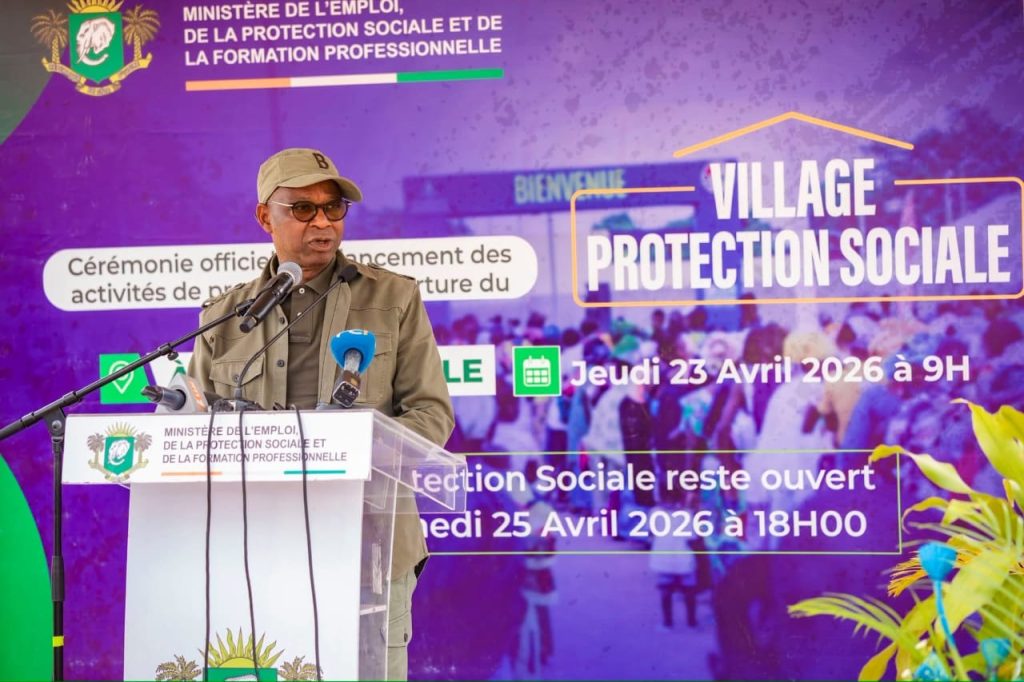 Le grand terrain de Williamsville dans la commune d’Adjamé a accueilli, ce jeudi 23 avril 2026, la cérémonie officielle de lancement des activités de proximité du ministère de l’Emploi, de la Protection sociale et de la Formation professionnelle, couplée à l’ouverture du village de la Protection sociale. La cérémonie a été présidée par le ministre Adama Kamara, en présence des autorités locales, des chefs traditionnels et des populations venues nombreuses.