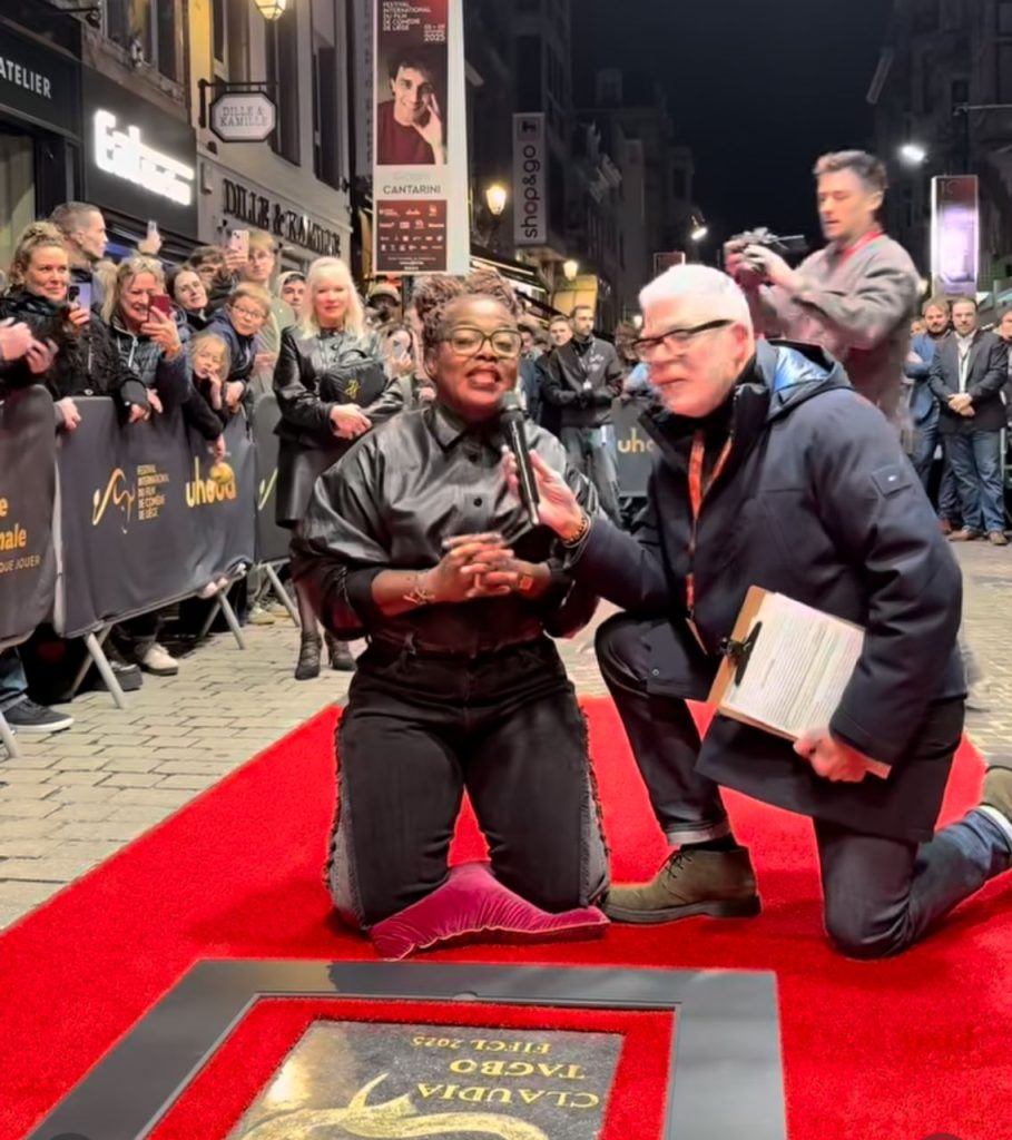 Intervenant dans le cadre de la 10è édition du Festival International du Film de Comédie de Liège (FIFCL) en qualité de présidente du jury court métrage, Claudia Tagbo a eu l’honneur de voir son nom inscrit sur le Walk of Frame de la rue Pont d’Avroy, lui rendant hommage pour son parcours et sa contribution au cinéma de comédie.