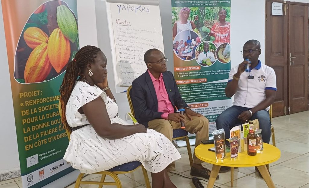 Cet atelier s’inscrit dans le cadre du projet « Renforcement de la société civile pour la durabilité et la bonne gouvernance de la filière cacao en Côte d’Ivoire », cofinancé par l’Union européenne et mis en œuvre par un consortium regroupant Inades-Formation Côte d’Ivoire, IDEF, Solidaridad West Africa, INKOTA et Fern.